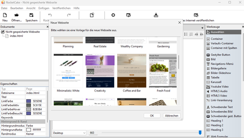 Der kostenlose und ergiebige HTML-Editor RocketCake wurde für Anfänger und Fortgeschrittene gleichermaßen entwickelt. Insbesondere für kleine statische Homepages und Webvisitenkarten ist dieser Editor gut geeignet. Er zeichnet sich durch seinen übersichtlichen, aber beachtenswerten Funktionsumfang aus.